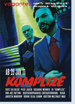 Joe Suttons spannender Politthriller zeigt in bedrückender Weise das Klima der Angst, in dem sich seit den Angriffen auf das World Trade Center ein Phänomen immer uferloser ausbreitet: Uneingeschränkte Macht ohne Kontrolle. Die Vaganten Bühne zeigt „Komplize“ als Deutsche Erstaufführung.